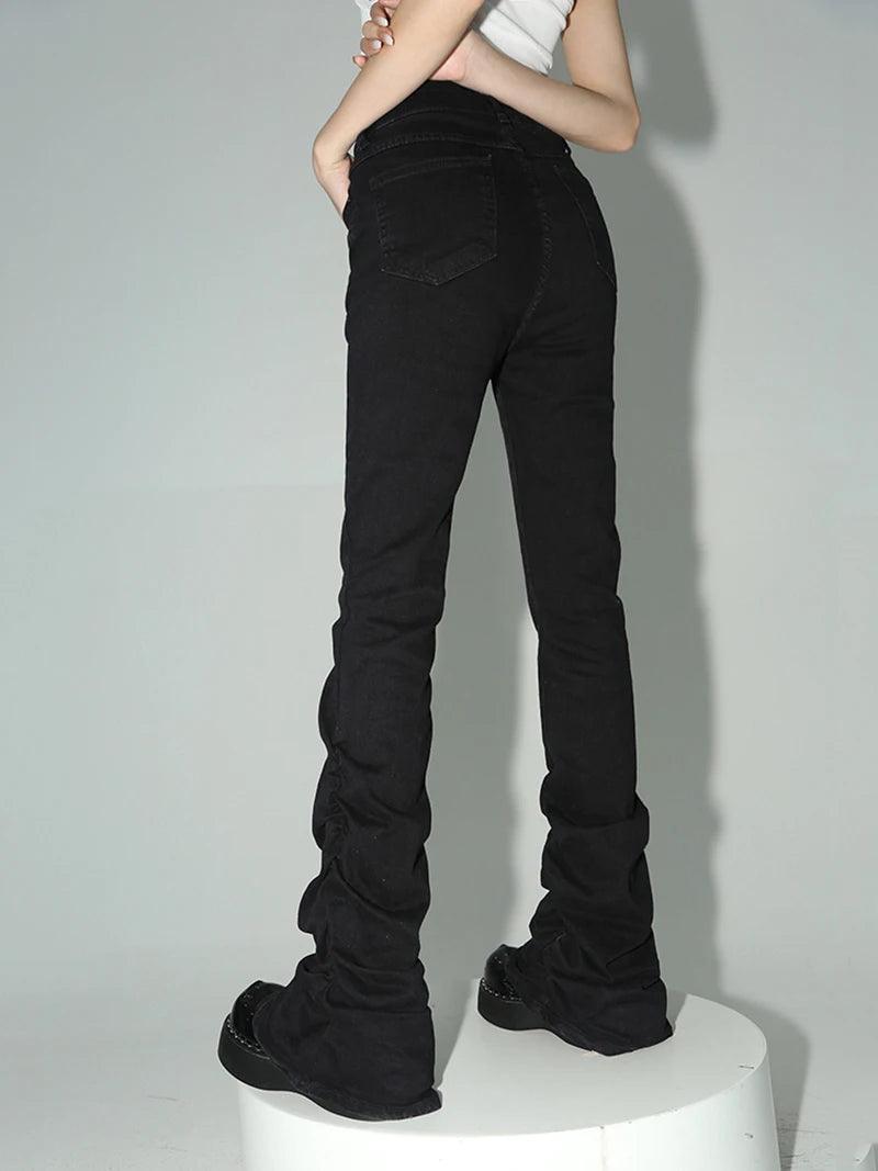 Goth Grunge Black Flare Jeans for Women – Chic Ruched Design!