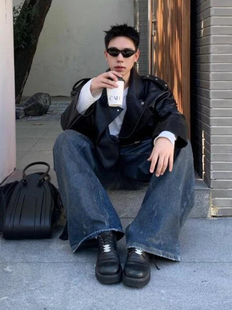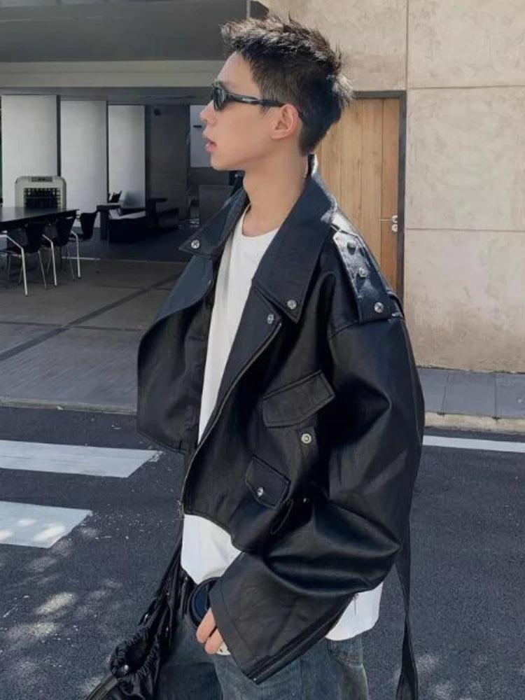 Handsome Men’s Jacket: Windproof Cropped Moto Style with Rivet Design