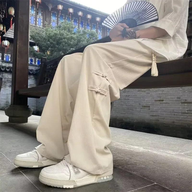 Summer High Street Men's Pants: Y2K Drape Wide Leg Fashion